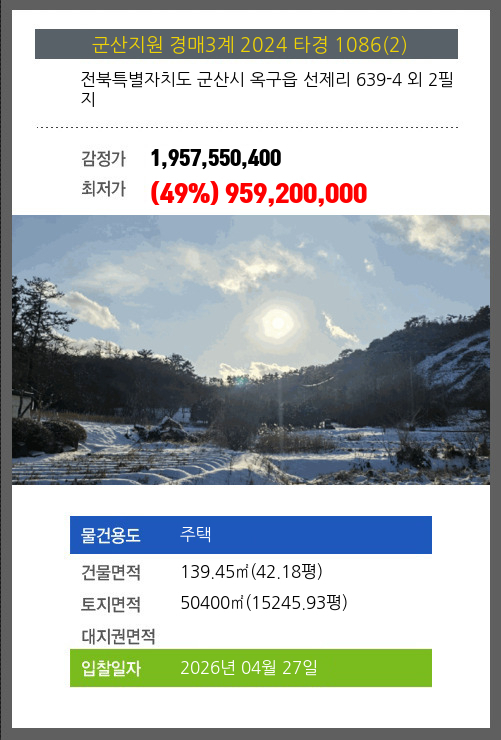 | 소재지 | [지번] 전북특별자치도 군산시 옥구읍 선제리 639-4 외 2필지 | ||||