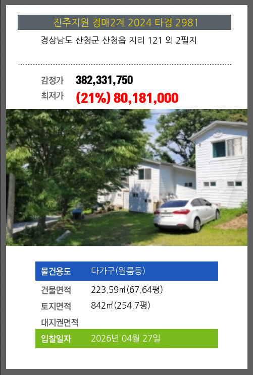 본건은 경상남도 산청군 산청읍 지리 121 외 2필지