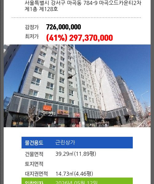 건물면적 457.72㎡ (138.46평) 채무자 ㈜** 최저가 (64%) 1,540,206,000