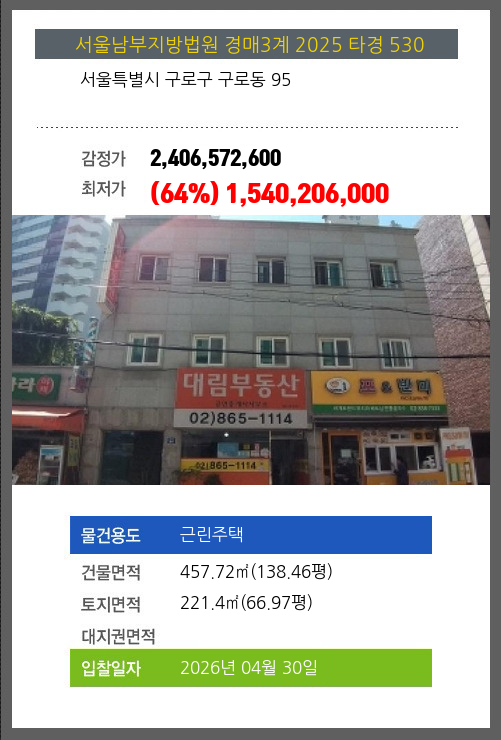 구로주택경매 구로구 구로동 95 №2025 타경 530
