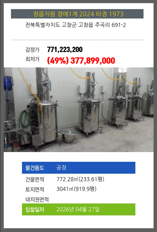 고창공장경매 고창군 고창읍 주곡리 691-2 №2024 타경 1973