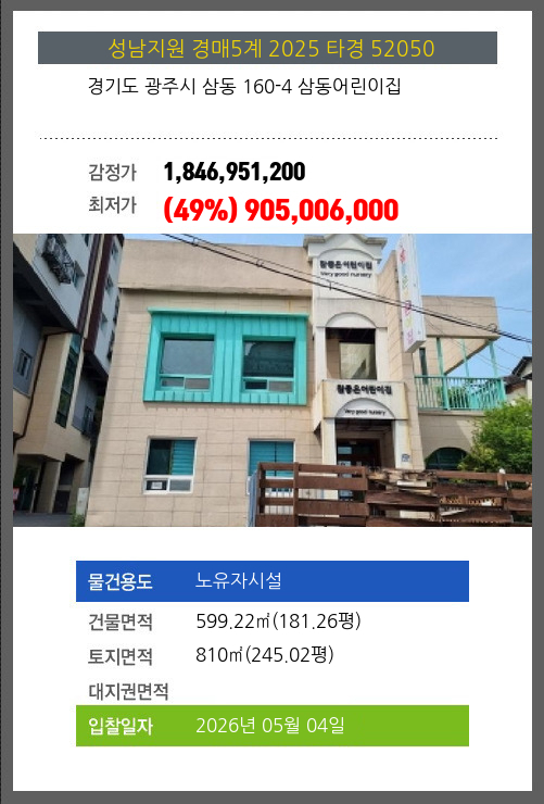 소재하는 노유자시설경매 물건의 포스팅입니다.