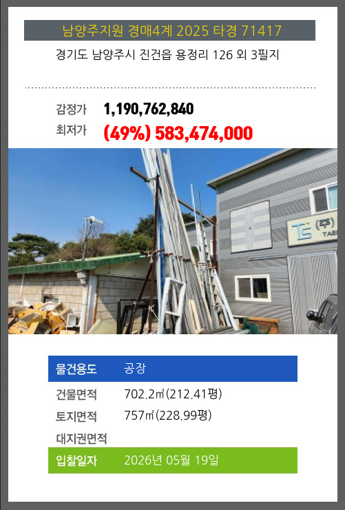 남양주공장경매 남양주시 진건읍 용정리 126 외 3필지 №2025 타경 71417