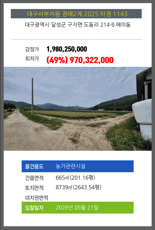 본건은 대구광역시 달성군 구지면 도동리 214-8 에이동