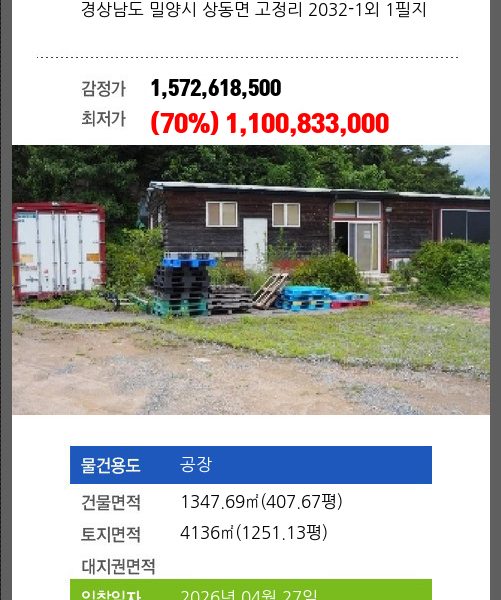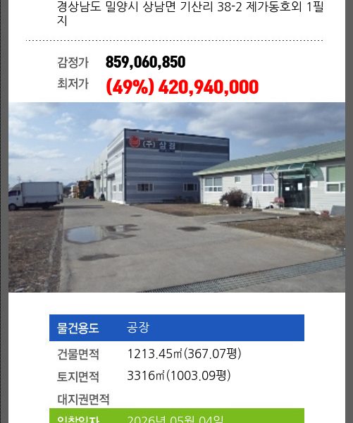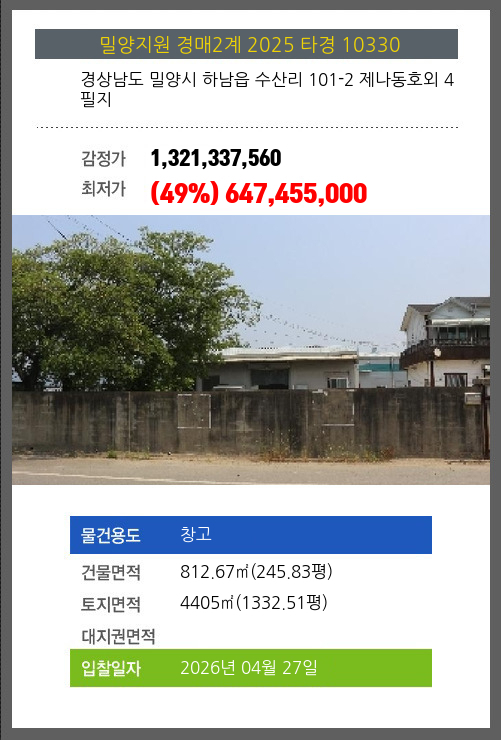 밀양창고경매 밀양시 하남읍 수산리 101-2 제나동호외 4필지 №2025 타경 10330
