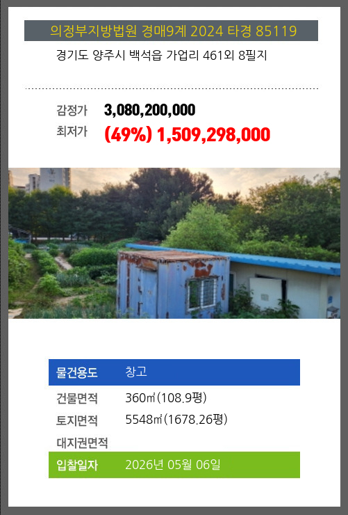 양주창고경매 양주시 백석읍 가업리 461외 8필지 №2024 타경 85119
