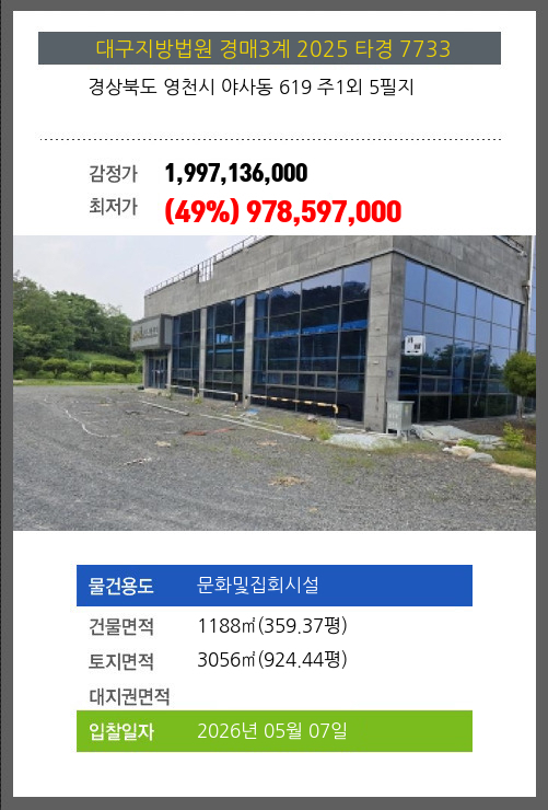 소재하는 문화및집회시설경매 물건의 포스팅입니다.