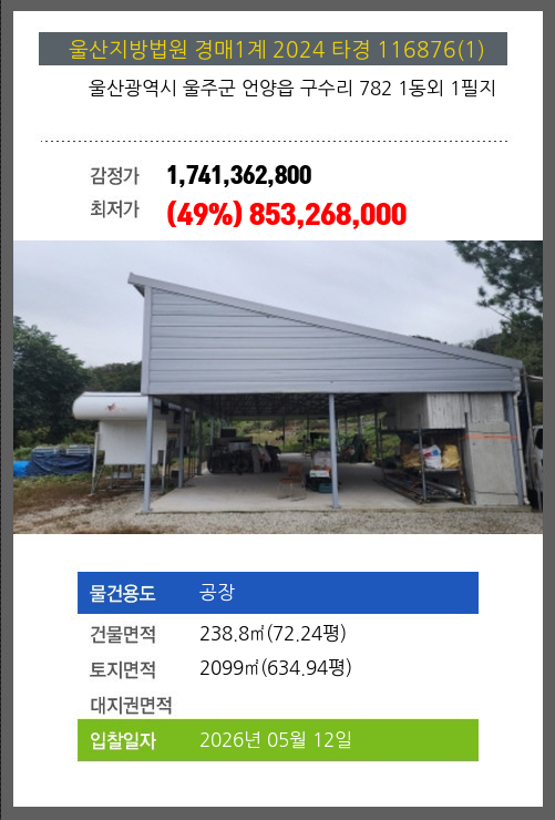울주공장경매 울주군 언양읍 구수리 782 1동외 1필지 №2024 타경 116876(1)