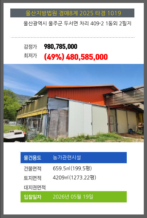 본건은 울산광역시 울주군 두서면 차리 409-2 1동외 2필지