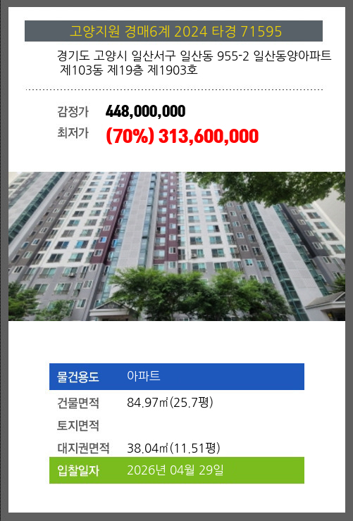 본건은 경기도 고양시 일산서구 일산동 955-2 일산동양아파트 제103동 제19층 제1903호