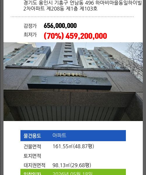 | 건물면적 | 59.95㎡ (18.13평) | 채무자 | 탁** | 최저가 | (70%) 449,400,000 |