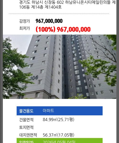 | 용도 | 아파트 | 채권자 | 에** | 감정가 | 1,940,000,000 |