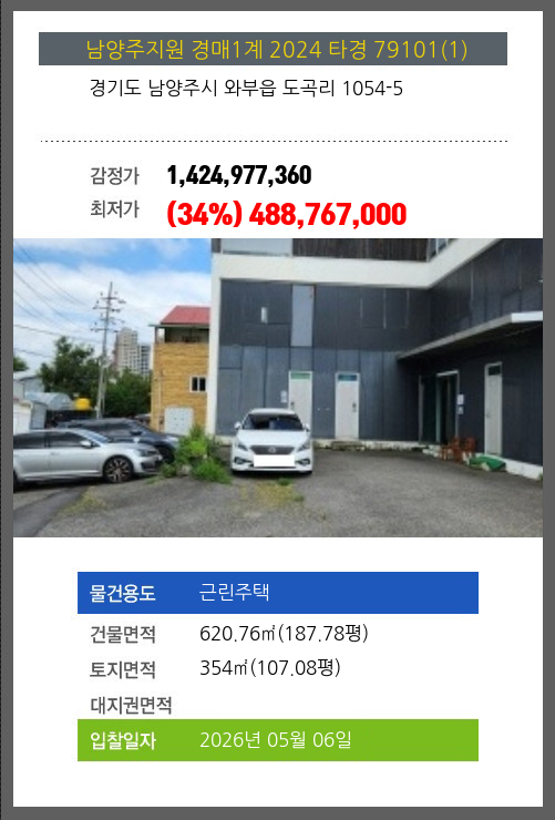 남양주주택경매 남양주시 와부읍 도곡리 1054-5 №2024 타경 79101(1)