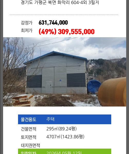 건물면적 620.76㎡ (187.78평) 채무자 김** 최저가 (34%) 488,767,000