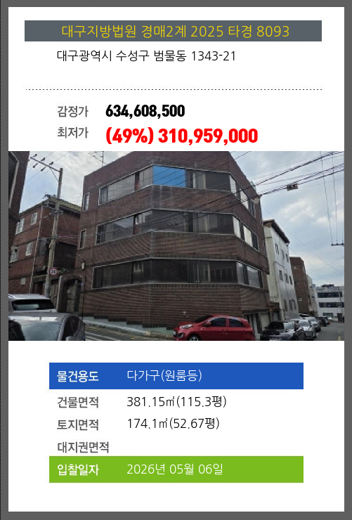 | 신건 | 2026-03-06 | 634,608,500 | 유찰 |
