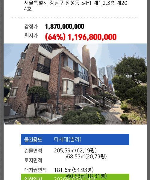 건물면적 420.29㎡ (127.14평) 채무자 세** 최저가 (64%) 2,359,818,000
