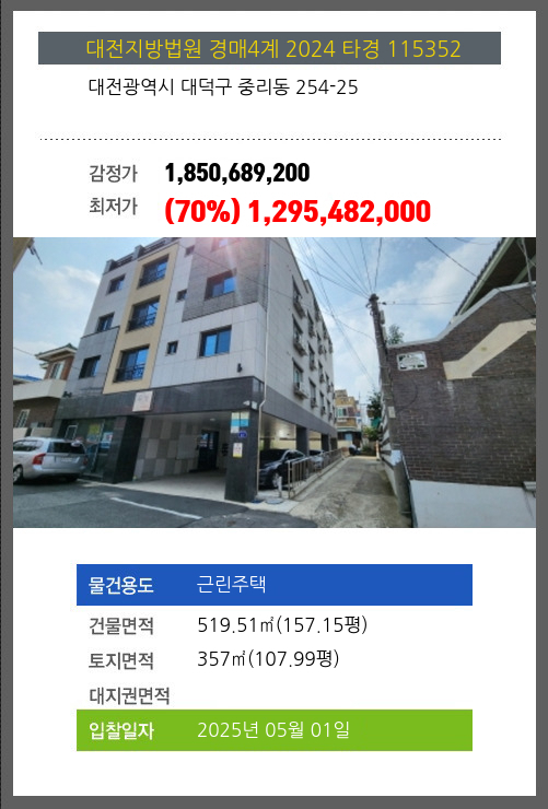 대전지방법원 부동산/토지/아파트 경매 등 추천 자료입니다.