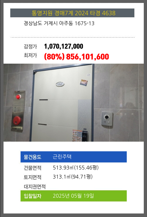 통영지원 부동산/토지/아파트 경매 등 추천 자료입니다.