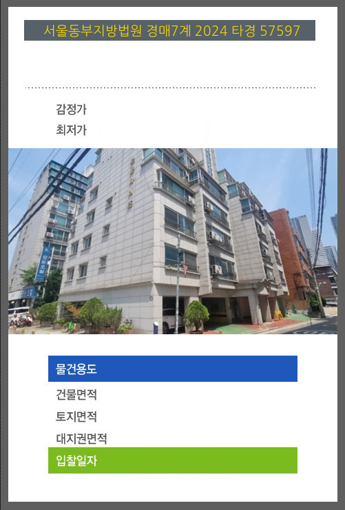서울동부지방법원 부동산/토지/아파트 경매 등 추천 자료입니다.