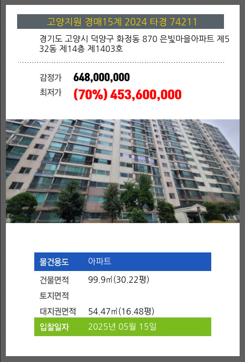 고양지원 부동산/토지/아파트 경매 등 추천 자료입니다.