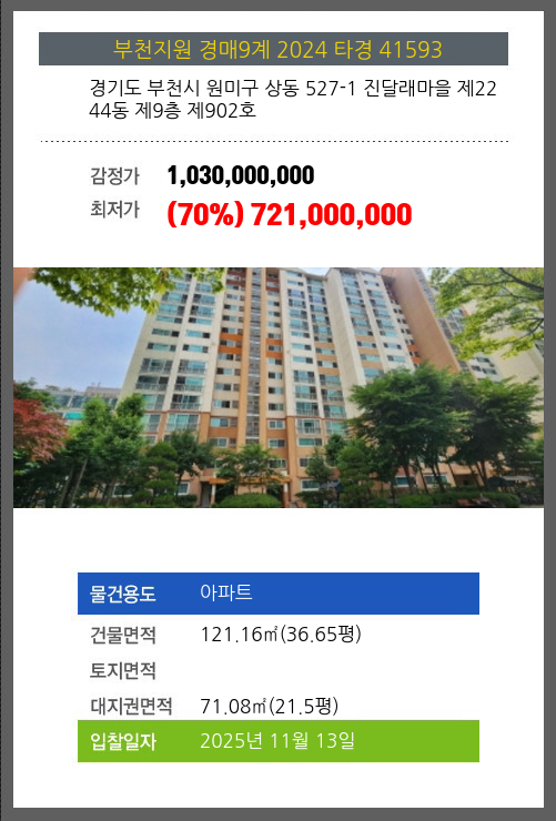 부천지원 부동산/토지/아파트 경매 등 추천 자료입니다.