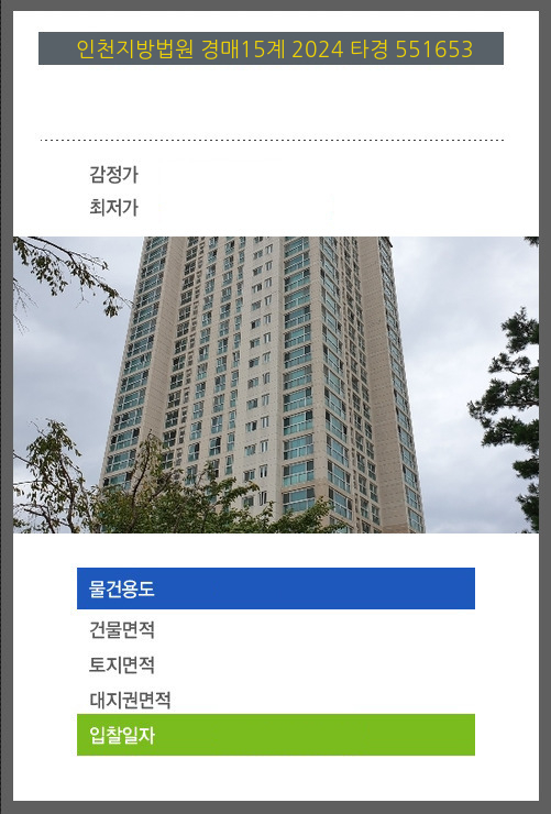인천지방법원 부동산/토지/아파트 경매 등 추천 자료입니다.